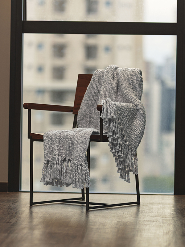 Manta em tricot com franjas